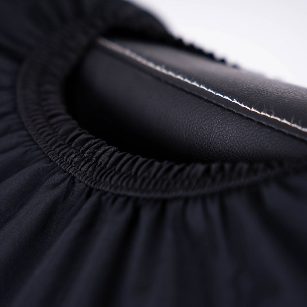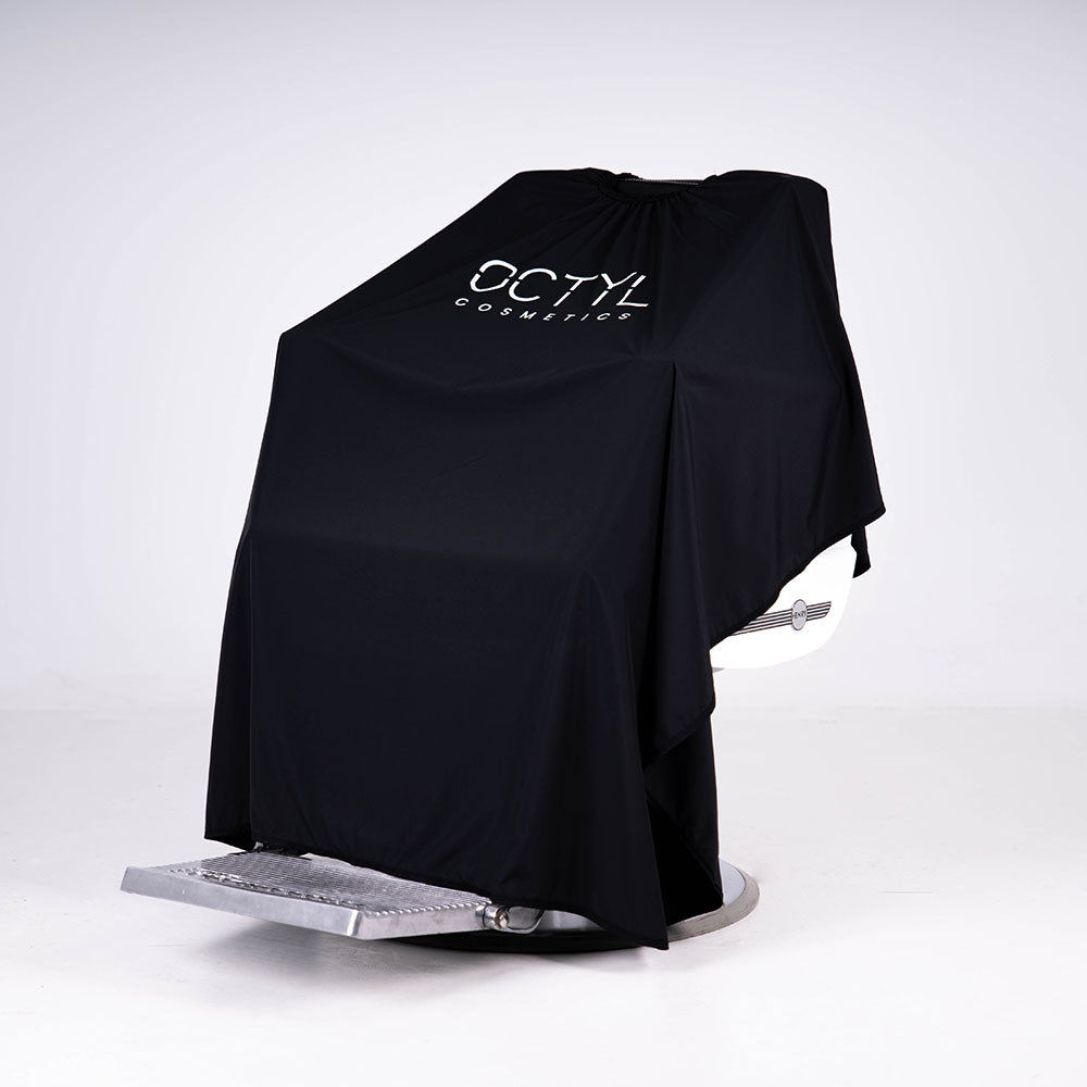 La capa de corte OCTYL está confeccionada en tejido japonés super soft, una mezcla de 80% poliéster y 20% algodón que ofrece una suavidad excepcional, una caída elegante y un tacto premium. Su material es 100% impermeable, evitando que el cabello, el agua o cualquier producto traspasen a la ropa del cliente.